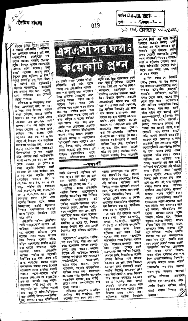 এসএসসির ফলঃ কয়েকটি প্রশ্ন Published on Newspaper দৈনিক বাংলা Category Public Examination Public Examination SSC Download