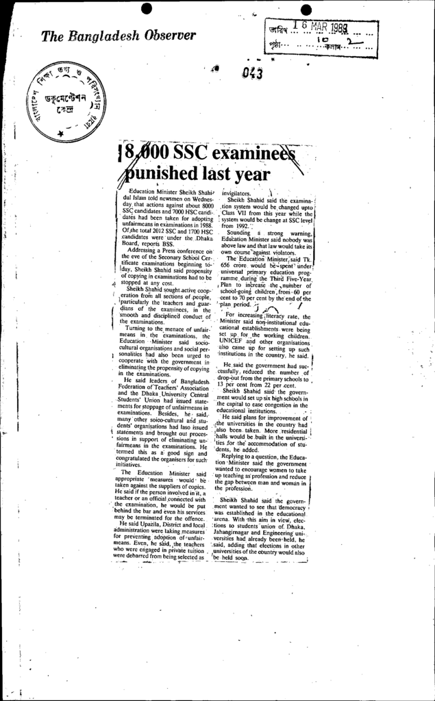 18.000 ssc examinees punished last year Published on Newspaper The Bangladesh Observer Category Public Examination Public Examination SSC Download
