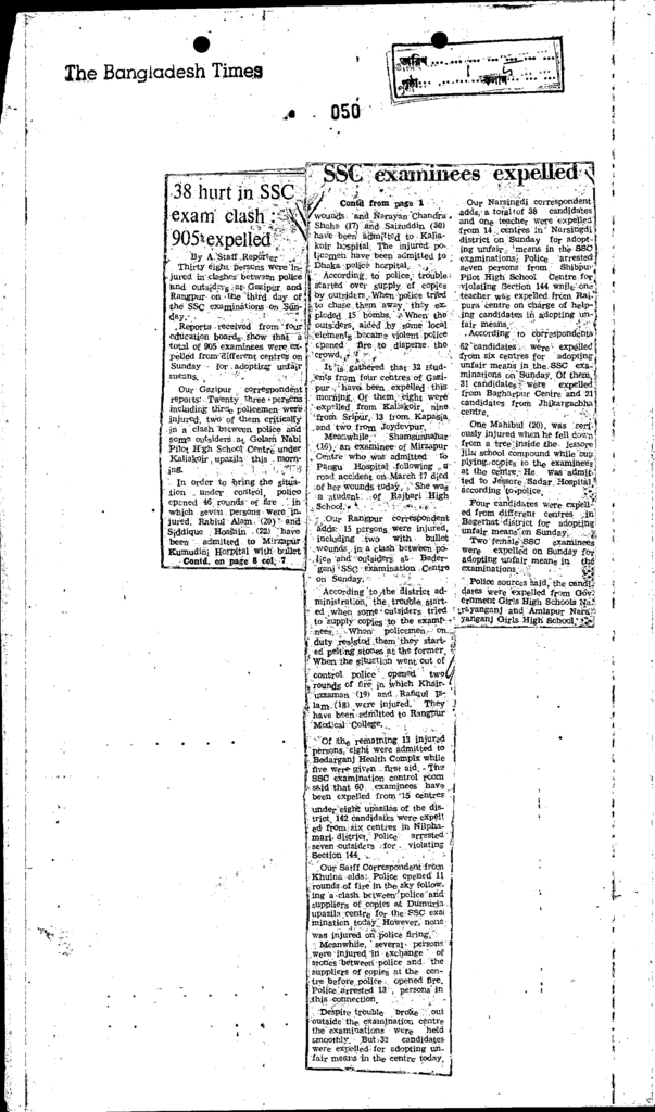 38 hurt in ssc exam clasxh 905t expelled Published on Newspaper The Bangladesh Times Category Public Examination Public Examination SSC Download