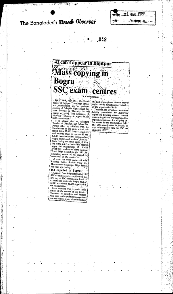 Mass copying in bogra ssc exam centres Published on Newspaper The Bangladesh Observer Category Public Examination Public Examination SSC Download