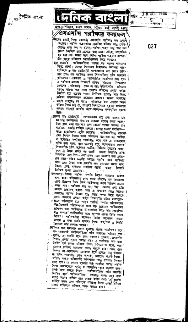 এসএসসি পরীক্ষার ফলাফল Published on Newspaper দৈনিক বাংলা Category Public Examination Public Examination SSC Download