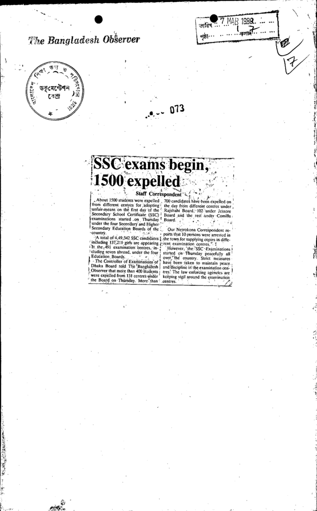 Ssc exams begin 1500 expelled Published on Newspaper The Bangladesh Observer Category Public Examination Public Examination SSC Download