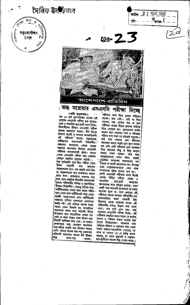 অন্ধ সরোয়ার এসএসসি পরীক্ষা দিচ্ছে Published on Newspaper দৈনিক ইনকিলাব Category Public Examination Public Examination SSC Download