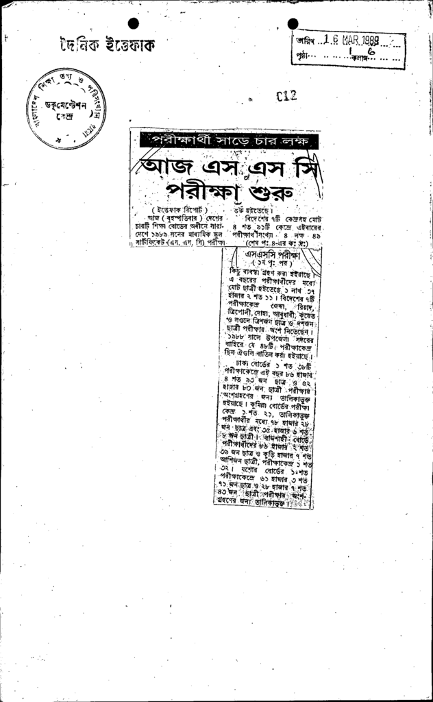 আজ এস এস সি পরীক্ষা শুরু Published on Newspaper দৈনিক ইত্তেফাক Category Public Examination Public Examination SSC Download