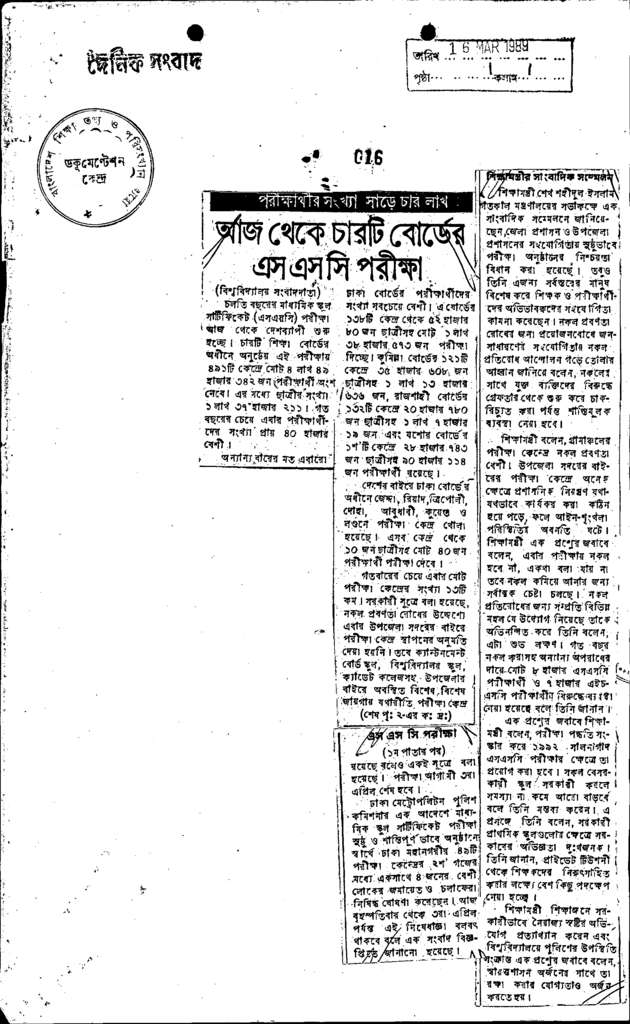 আজ থেকে চারটি বোর্ডের এসএসসি পরীক্ষা