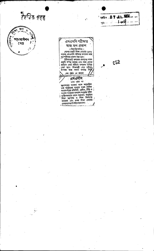 এসএসসি পরীক্ষার আজ ফল প্রকাশ Published on Newspaper দৈনিক খবর Category Public Examination Public Examination SSC Download