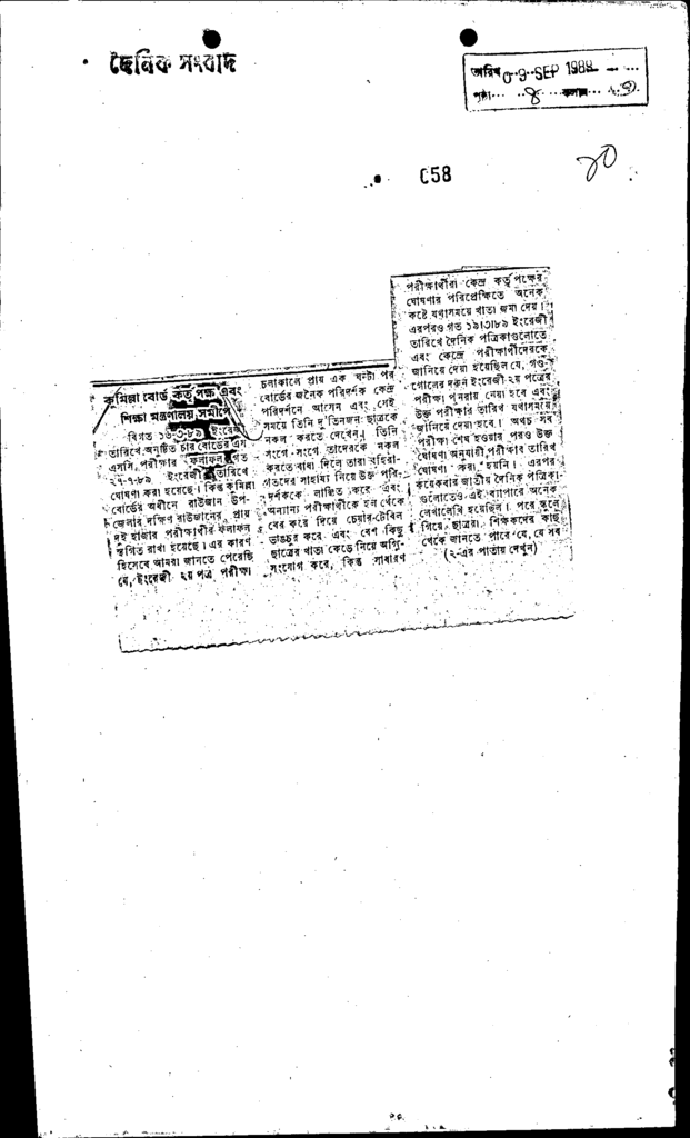 কুমিল্লা বোর্ড কর্তৃপক্ষ এবং শিক্ষা মন্ত্রণালয় সমীপে