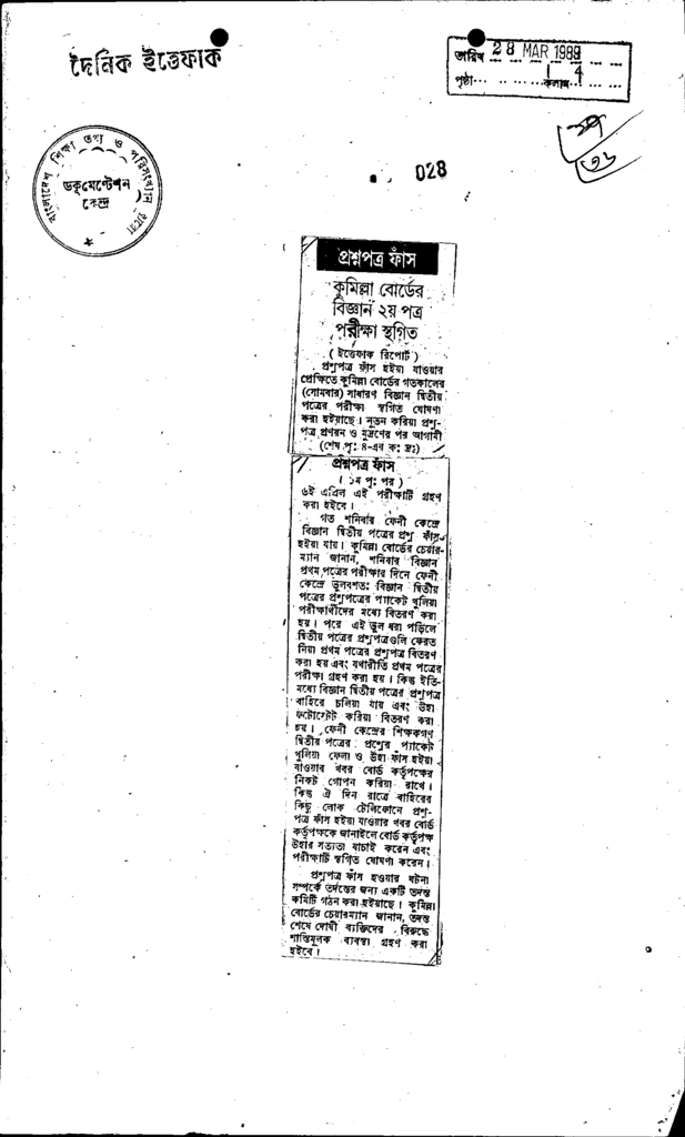 কুমিল্লা বোর্ডের বিজ্ঞান 2য় পত্র পরীক্ষা স্থগিত