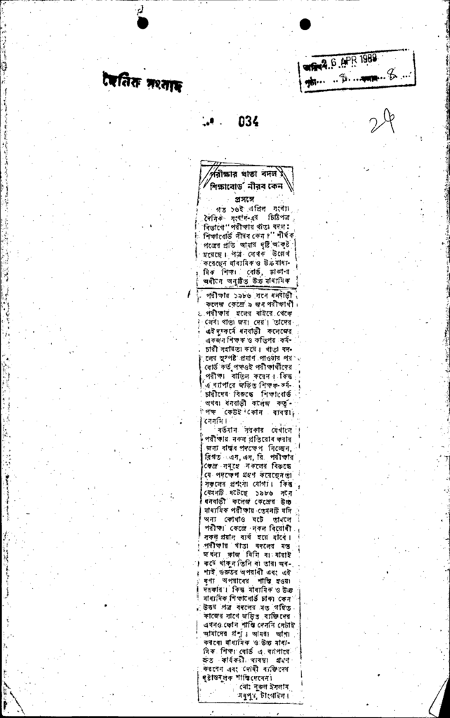 পরীক্ষার খাতা বদল শিক্ষাবোর্ড নীরব কেন প্রসঙ্গ Published on Newspaper দৈনিক সংবাদ Category Public Examination Public Examination SSC Download