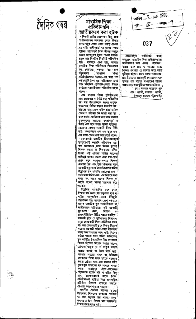 মাধ্যমিক শিক্ষা প্রতিষ্ঠানগুলি জাতীয়করণ করা হউক