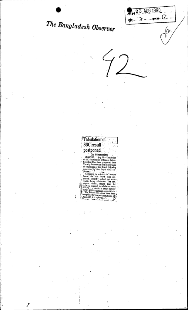 Tabulation of ssc result postponed Published on Newspaper The Bangladesh Observer Category Public Examination Public Examination SSC Download