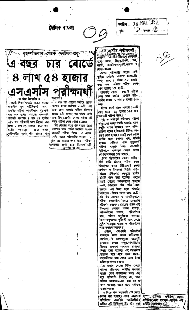 এ বছর চার বোর্ডে 4 লাখ 54 হাজার এসএসসি পরীক্ষার্থী Published on Newspaper দৈনিক বাংলা Category Public Examination Public Examination SSC Download