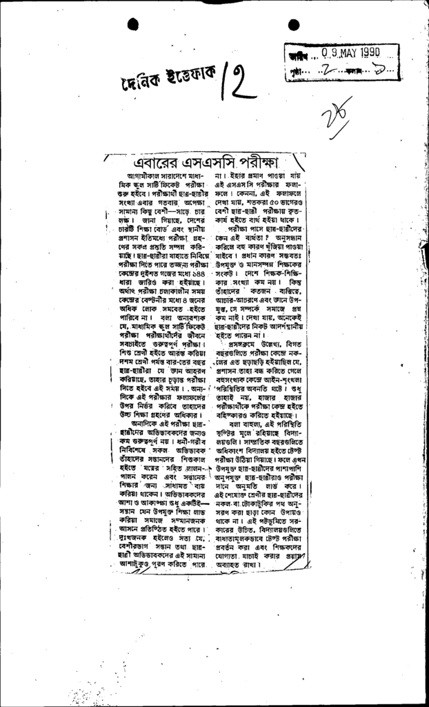 এবারের এসএসসি পরীক্ষা Published on Newspaper দৈনিক ইত্তেফাক Category Public Examination Public Examination SSC Download