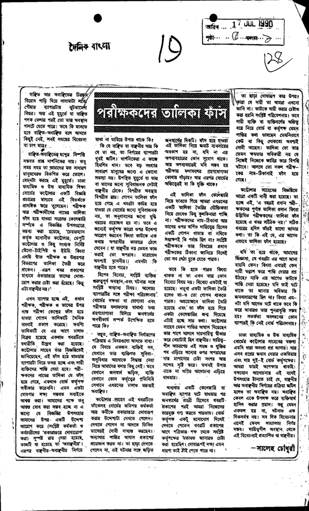 পরীক্ষকদের তালিকা ফাঁস Published on Newspaper দৈনিক বাংলা Category Public Examination Public Examination SSC Download