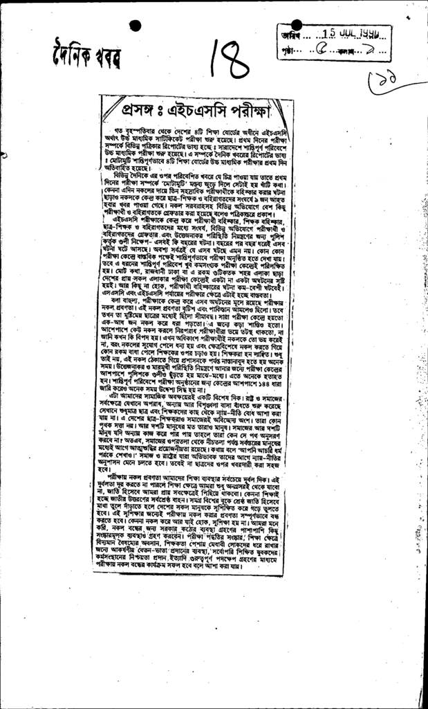 প্রসঙ্গঃ এইচএসসি পরীক্ষা Published on Newspaper দৈনিক খবর Category Public Examination Public Examination SSC Download