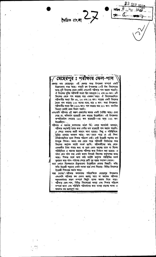 মেহেরপুরঃ পরীক্ষায় ফেল-পাস Published on Newspaper দৈনিক বাংলা Category Public Examination Public Examination SSC Download