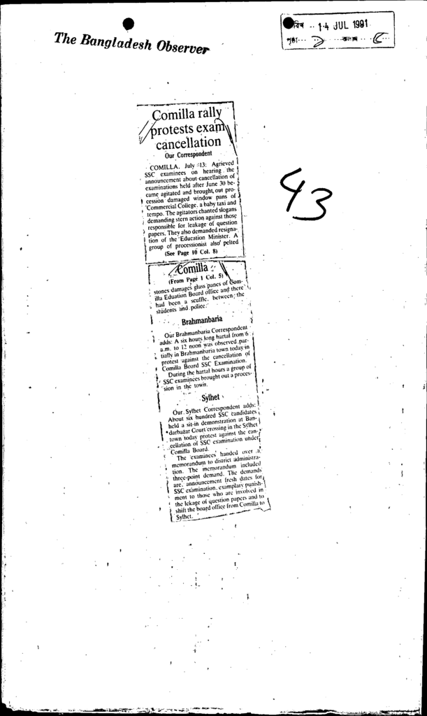 Comilla rally protests exam cancellation Published on Newspaper The Bangladesh Observer Category Public Examination Public Examination SSC Download