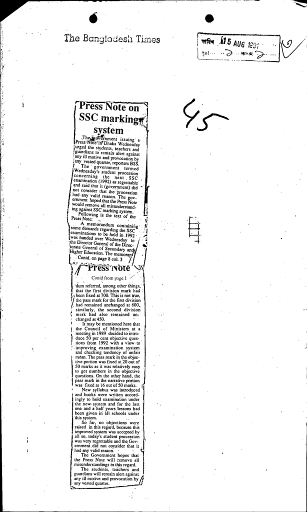 Press note on ssc marking system Published on Newspaper The Bangladesh Times Category Public Examination Public Examination SSC Download