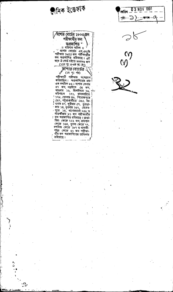 যশোর বোর্ডের 1803 জন পরীক্ষার্থীর ফল অপ্রকাশিত Published on Newspaper দৈনিক ইত্তেফাক Category Public Examination Public Examination SSC Download