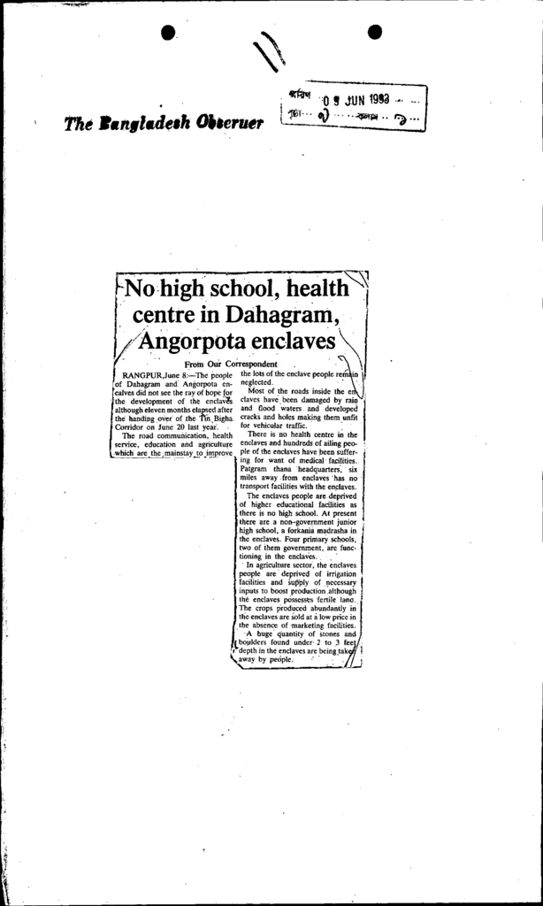 No high school, health centre in dahagram, angorpota enclaves Published on Newspaper The Bangladesh Observer Category Public Examination Public Examination SSC Download