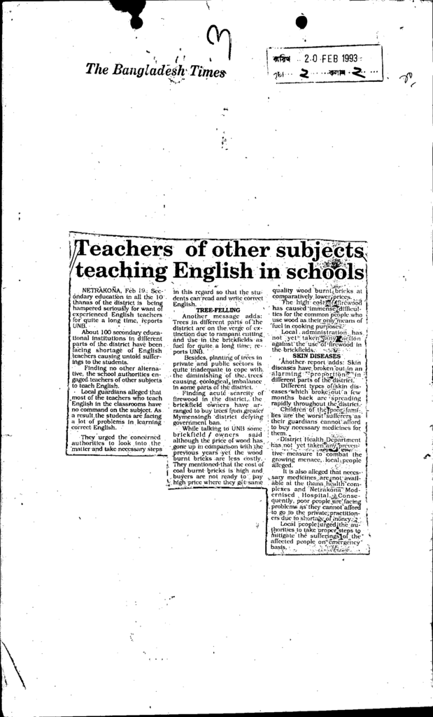 Teachers of others subjects teaching english in schools Published on Newspaper The Bangladesh Times Category Public Examination Public Examination SSC Download