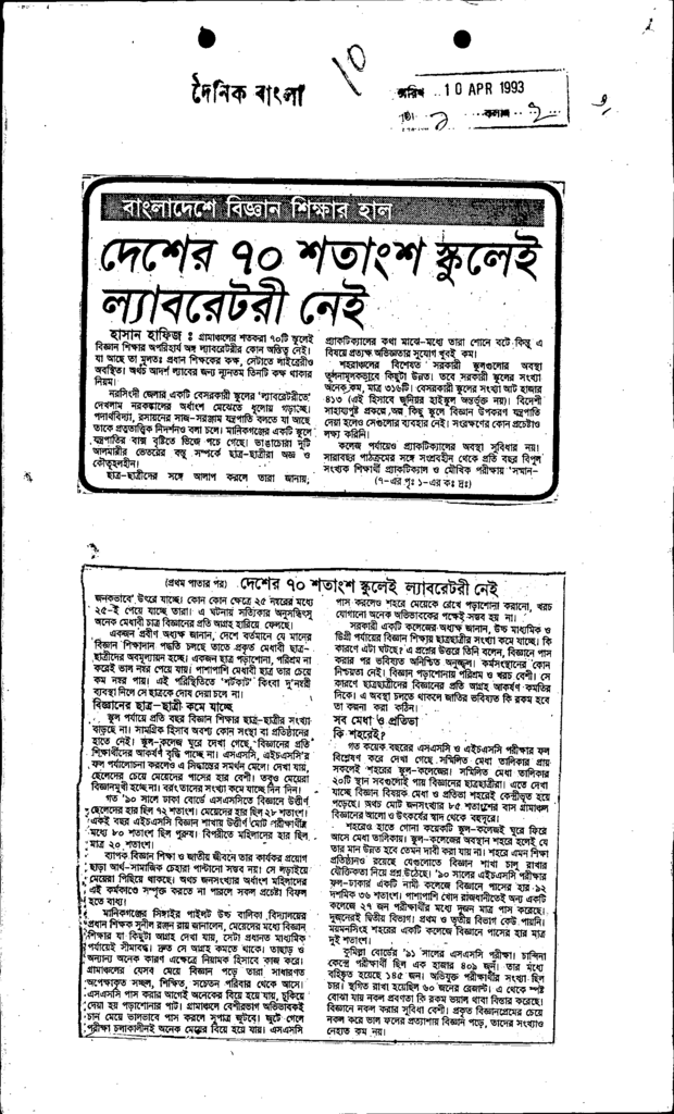 দেশের 70 শতাংশ স্কুলে ল্যাবরেটরী নেই Published on Newspaper দৈনিক বাংলা Category Public Examination Public Examination SSC Download