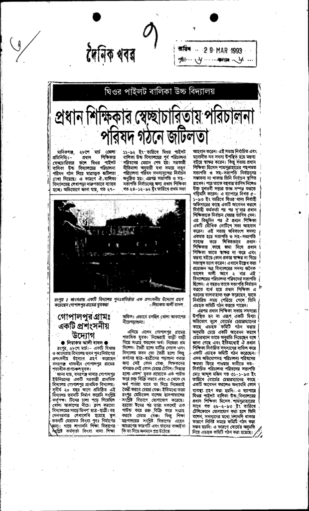 প্রধান শিক্ষিকার স্বেচ্ছাচারিতায় পরিচালনা পরিষদ গঠনে জটিলতা Published on Newspaper দৈনিক খবর Category Public Examination Public Examination SSC Download