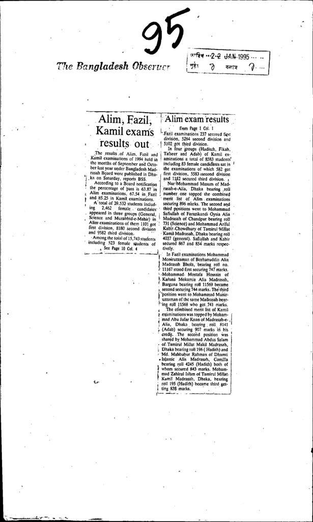 Alim, fazil, kamil exams results out Published on Newspaper The Bangladesh Observer Category Public Examination Public Examination SSC Download