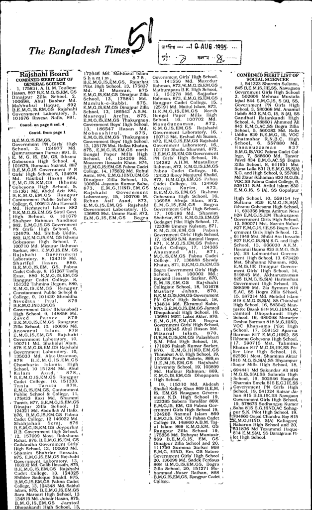 Rajshahi board combined merit list of general science Published on Newspaper The Bangladesh Times Category Public Examination Public Examination SSC Download