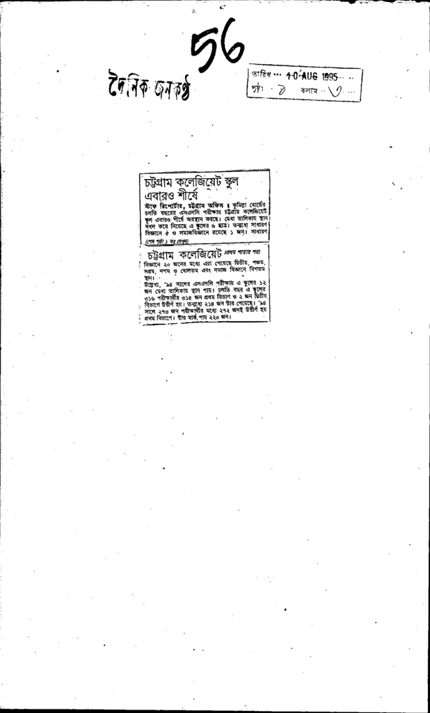 চট্রগ্রাম কলেজিয়েট স্কুল এবারও শীর্ষে Published on Newspaper দৈনিক জনকণ্ঠ Category Public Examination Public Examination SSC Download