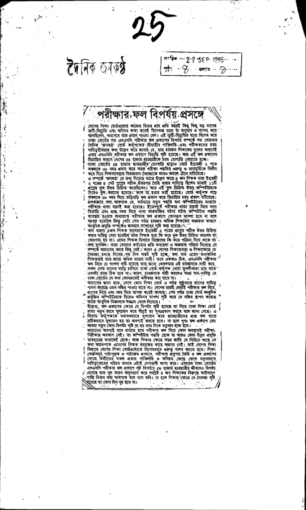 পরীক্ষার ফল বিপর্যয় প্রসঙ্গে Published on Newspaper দৈনিক জনকণ্ঠ Category Public Examination Public Examination SSC Download