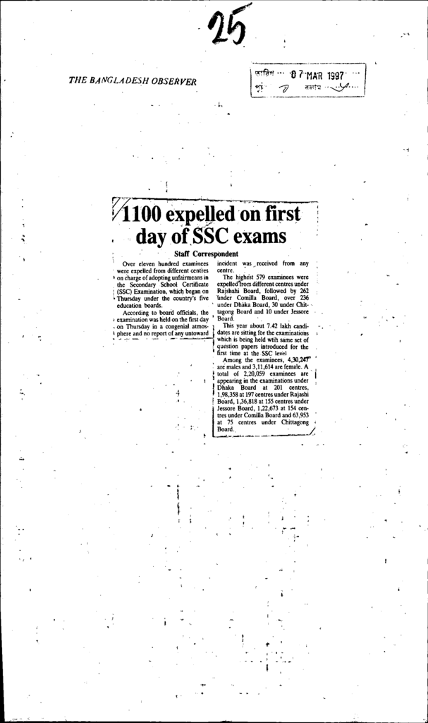 1100 expelled on first day of ssc exams Published on Newspaper The Bangladesh Observer Category Public Examination Public Examination SSC Download