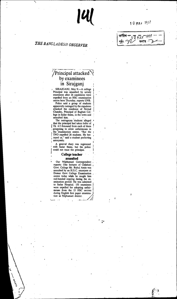 Principal attacked by examinees in sirajganj Published on Newspaper The Bangladesh Observer Category Public Examination Public Examination SSC Download