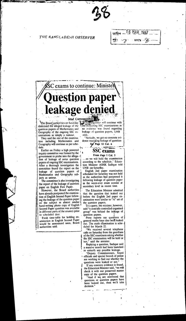 Question paper leakage denied Published on Newspaper The Bangladesh Observer Category Public Examination Public Examination SSC Download