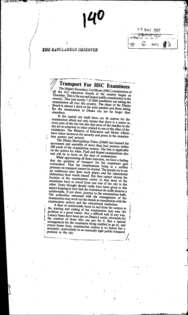 Transport for hsc examinees Published on Newspaper The Bangladesh Observer Category Public Examination Public Examination SSC Download