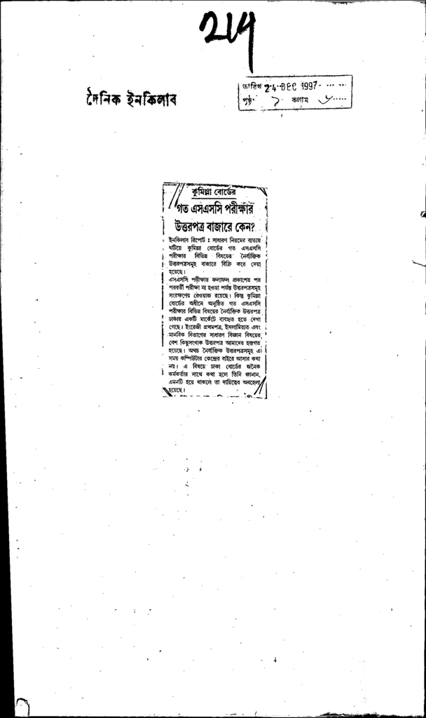 গত এসএসসি পরীক্ষার উত্তরপত্র বাজারে কেন?