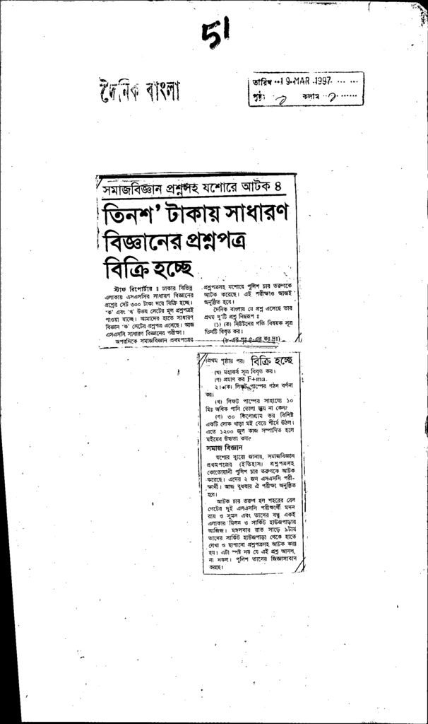 তিনশ’ টাকায় সাধারণ বিজ্ঞানের প্রশ্নপত্র বিক্রি হচ্ছে Published on Newspaper দৈনিক বাংলা Category Public Examination Public Examination SSC Download