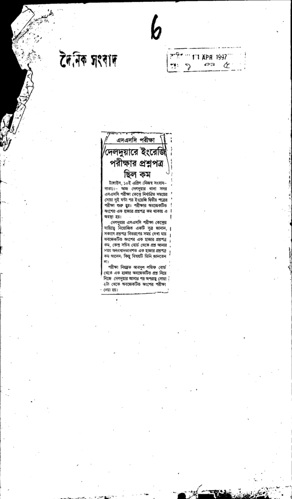 দেলদুয়ারে ইংরেজি পরীক্ষার প্রশ্নপত্র ছিল কম Published on Newspaper দৈনিক সংবাদ Category Public Examination Public Examination SSC Download