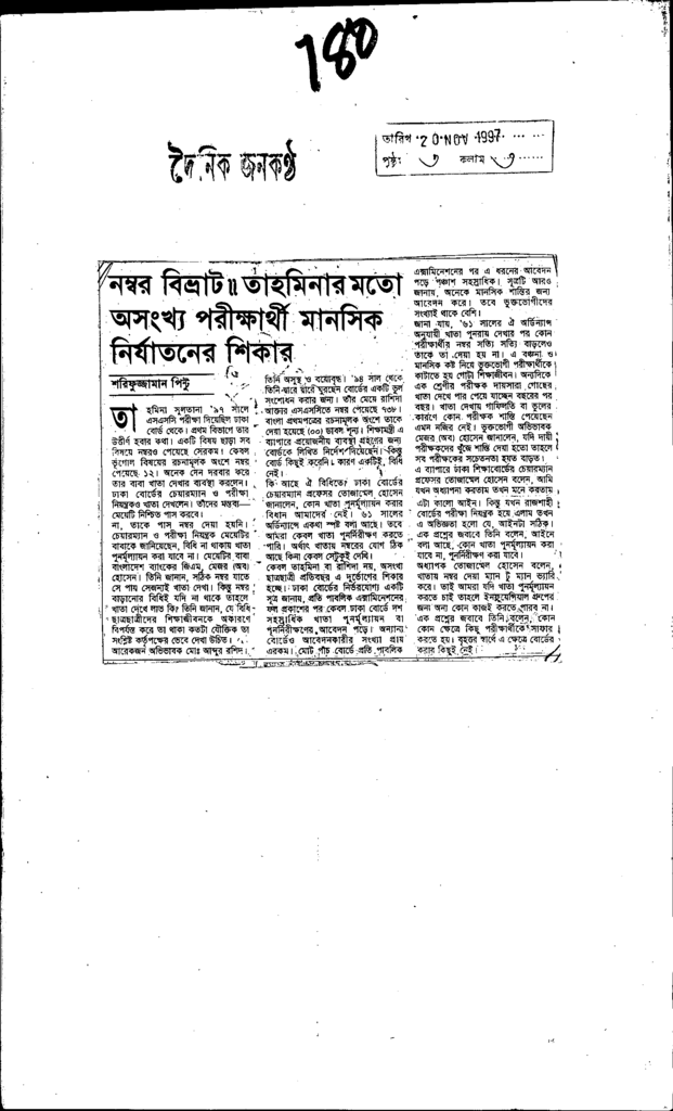 নম্বর বিভ্রাট!! তাহমিনার মতো অসংখ্য পরীক্ষার্থী মানসিক নির্যাতনের শিকার