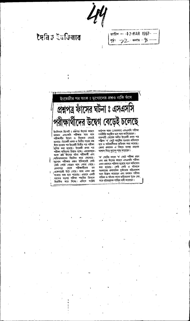 প্রশ্নপত্র ফাঁসের ঘটনাঃ এসএসসি পরীক্ষার্থীদের উদ্বেগ বেড়েই চলেছে Published on Newspaper দৈনিক ইনকিলাব Category Public Examination Public Examination SSC Download