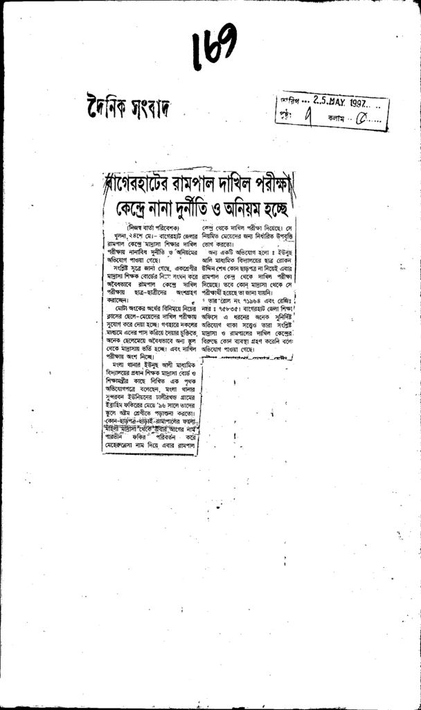 বাগেরহাটের রামপাল দাখিল পরীক্ষা কেন্দ্রে নানা দুর্নীতি ও অনিয়ম হচ্ছে Published on Newspaper দৈনিক সংবাদ Category Public Examination Public Examination SSC Download
