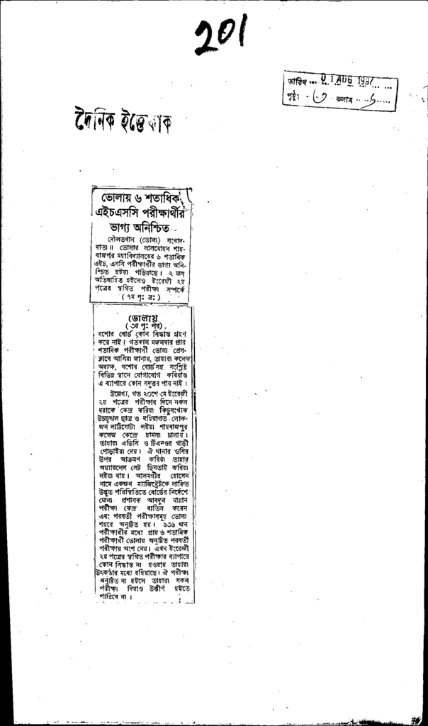 ভোলায় 6 শতাধিক এইচএসসি পরীক্ষার্থীর ভাগ্য অনিশ্চিত