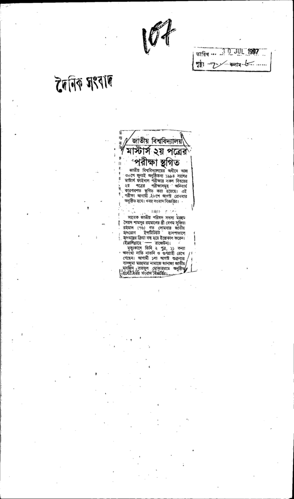 মাস্টার্স 2য় পত্রের পরীক্ষা স্থগিত Published on Newspaper দৈনিক সংবাদ Category Public Examination Public Examination SSC Download