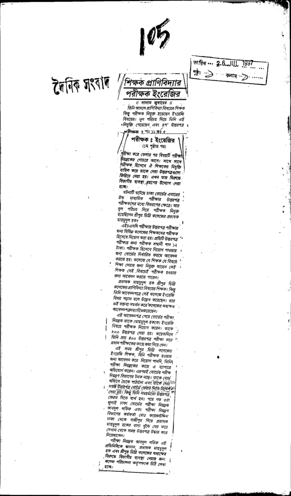 শিক্ষক প্রাণিবিদ্যার পরীক্ষক ইংরেজির Published on Newspaper দৈনিক সংবাদ Category Public Examination Public Examination SSC Download