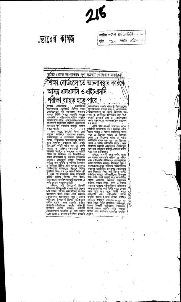 শিক্ষা বোর্ডগুলোতে অচলাবস্থার কারণে আসন্ন এসএসসি ও এইচএসসি পরীক্ষা ব্যাহত হতে পারে Published on Newspaper দৈনিক ভোরের কাগজ Category Public Examination Public Examination SSC Download