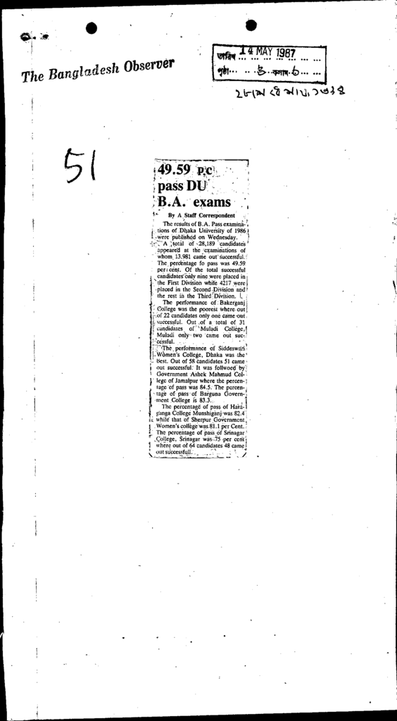 49.59 pc pass du b.a exams Published on Newspaper The Bangladesh Observer Category Public Examination Public Examination Higher Education Download