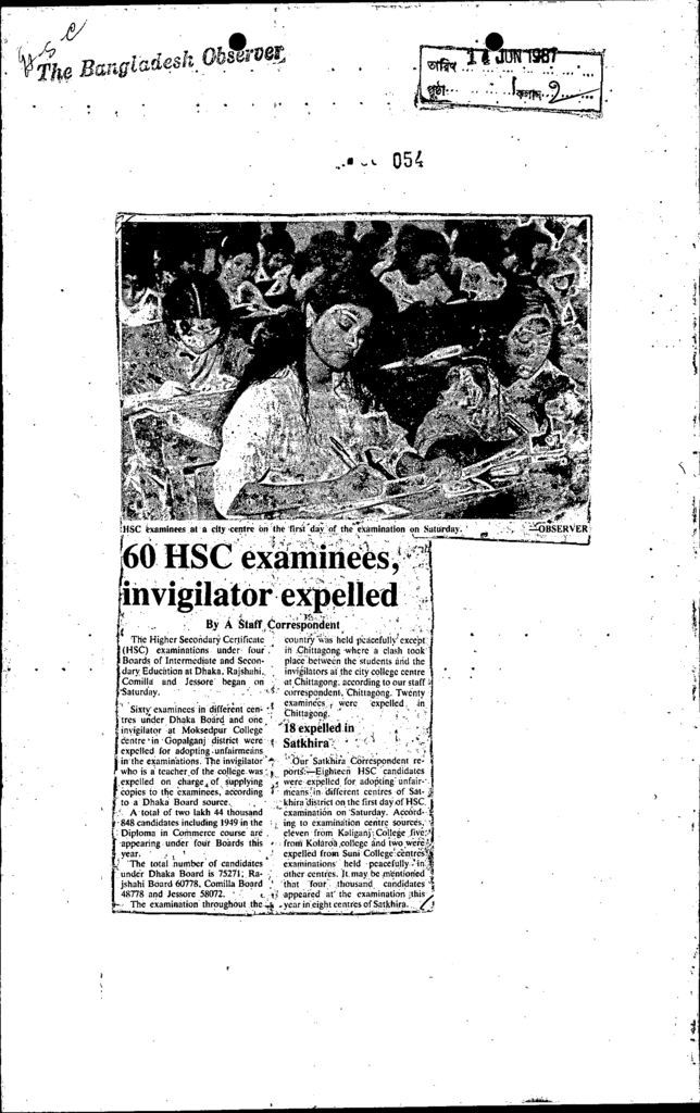 60 hsc examinees, invigilator expelled Published on Newspaper The Bangladesh Observer Category Public Examination Public Examination Higher Education Download