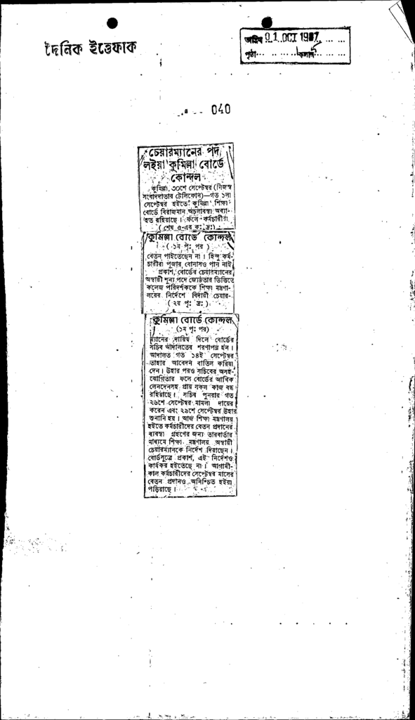 চেয়ারম্যানের পদ লইয়া কুমিল্লা বোর্ডে কোন্দল Published on Newspaper দৈনিক ইত্তেফাক Category Public Examination Public Examination Higher Education Download