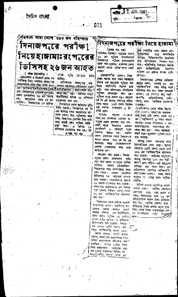দিনাজপুরে পরীক্ষা নিয়ে হাঙ্গামাঃ রংপুরের ডিসিসহ 26 জন আহত Published on Newspaper দৈনিক বাংলা Category Public Examination Public Examination Higher Education Download