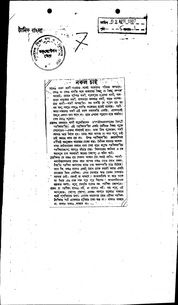 নকল চাই Published on Newspaper দৈনিক বাংলা Category Public Examination Public Examination Higher Education Download
